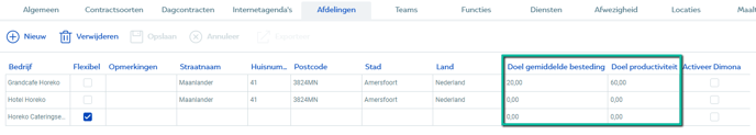 To set the target average spending per guest and target productivity, go to Manage (Employee) -> Settings -> Departments tab.