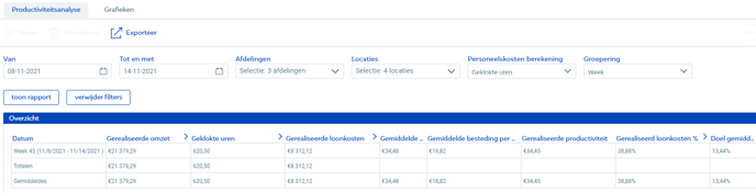 -There is a way to divide sales in the Logbook by department. However, splitting the turnover per department can also distort the picture. This is because, in reality, not only the kitchen is responsible for the food turnover and service is not solely responsible for the drinks turnover. Everyone works together to generate the entire turnover. When creating a productivity analysis, we also recommend that you look at the whole picture, i.e. all turnover and all clocked hours, for a certain period of time. - Locations: Select the locations you want to analyse.