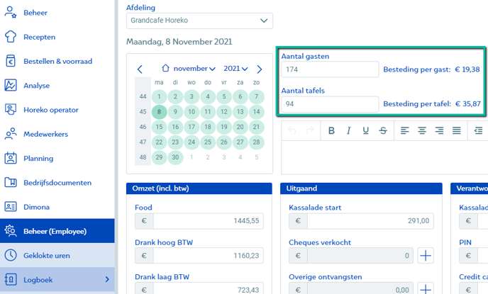 In Horeko, you can run a productivity analysis by looking at the clocked hours and turnover in the Logbook. In this article, you will find out exactly how that works.