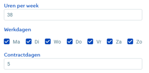 If you choose contract hours & clocked hours, Horeko will include the actually clocked hours of employees with a zero-hour contract and the contract hours of employees with a fixed contract. The system divides the number of contract hours by the number of ticked working days in the contract (often all seven days in the catering industry, see example on the screenshot below), and multiplies that by the hourly wage.