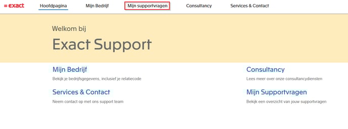Je komt dan op de hoofdpagina terecht, hier kan je bovenin naar Mijn Supportvragen gaan.