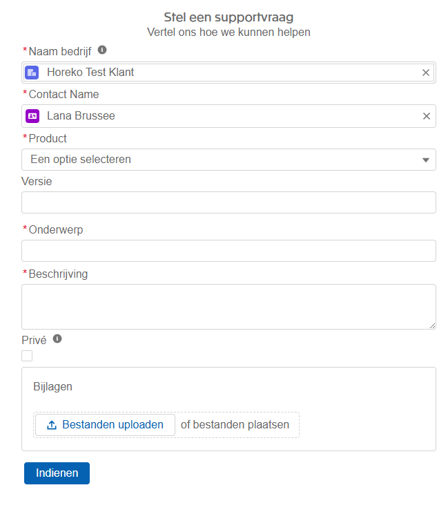 Daar kan je op Contact met support klikken en de gegevens invullen.