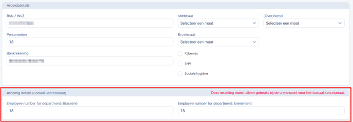 Let op, jullie hebben als het goed is maar één connectienummer, deze is dus identiek en moet je dus bij elke afdeling invullen. - Onderin kan je verschillende urensoorten aanzetten door een urencode in te voeren.