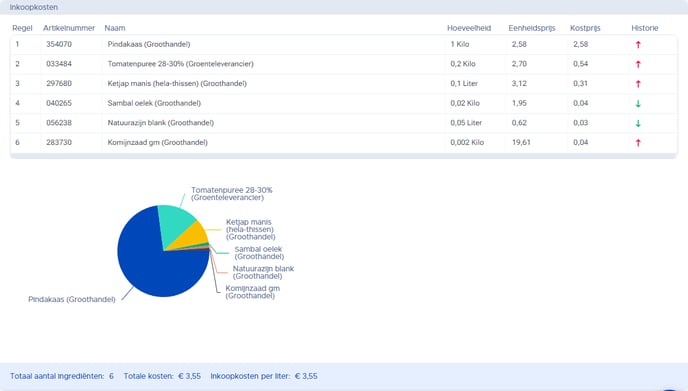 Je kunt het ene halfproduct als ingrediënt van het andere halfproduct invoeren. Dit kan tot oneindig veel niveaus. Je kunt bijvoorbeeld een basisdressing maken (halfproduct 1), dat is een ingrediënt van de bieslookdressing (halfproduct 2), wat weer een ingrediënt is van de kopgarnituur van een lunchgerecht (halfproduct 3). Horeko zal de kostprijzen op al deze niveaus doorrekenen.
