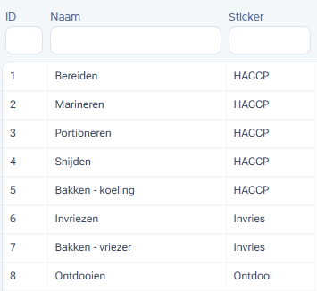 In de backoffice kun je Mise en Place lijsten maken, zodat deze naar voren komen op de operator. De koks kunnen aan de hand daarvan de Mise en Place taken uitvoeren, afvinken en stickers uitprinten.
