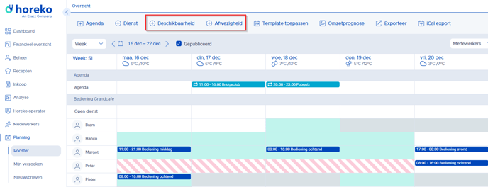 Voor de beschikbaarheid en afwezigheid die je in de planning aanmaakt, of die door de medewerker zelf wordt ingevoerd/aangevraagd, geldt: