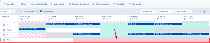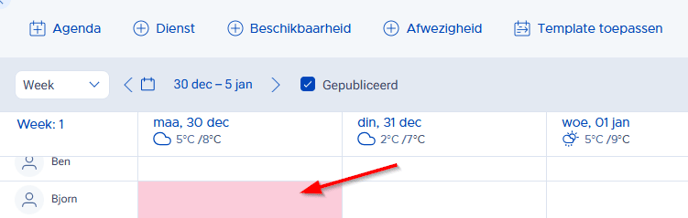 De medewerker kan dus beschikbaarheid invoeren. De afwezigheid is dan uit het systeem verwijderd en de kleur in het rooster wordt groen: