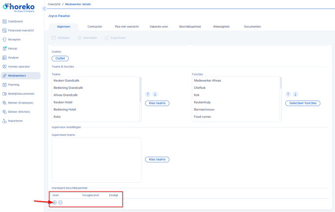 Daarna wordt het schoolrooster van deze medewerker bekend en aan de hand daarvan spreken jullie af op welke dagen van de week hij beschikbaar is. Dit wordt ingevoerd als standaard beschikbaarheid in zijn account: