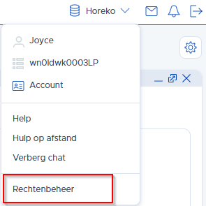 Klik rechts bovenin, achter de naam van de database, op het pijltje naar beneden en dan op Rechtenbeheer.