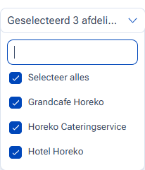 Het is mogelijk om één of meerdere afdelingen te selecteren. Om per afdeling de omzet, productiviteit en het loonkostenpercentage te kunnen berekenen, moet zowel de omzetprognose als de omzet per afdeling ingevoerd zijn.