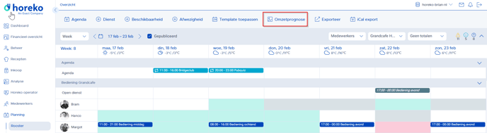 In dit voorbeeld wordt (ook) gebruik gemaakt van Employee Manager en is er een omzetprognose ingevoerd.