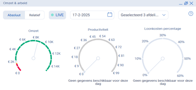 In het dit voorbeeld zie je in de Productiviteitsmeter de productiviteit in absolute euro's.